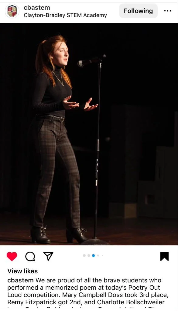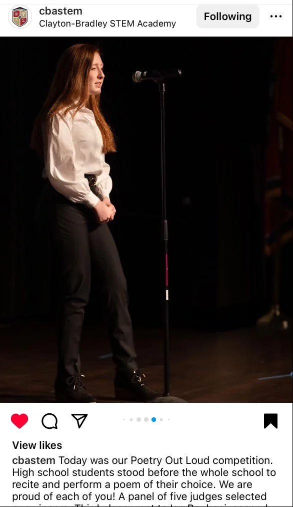 Reciting poetry with feeling, understanding, and empathy in front of an audience, and placing as a school finalist for two years in a row is a personal triumph of mine.